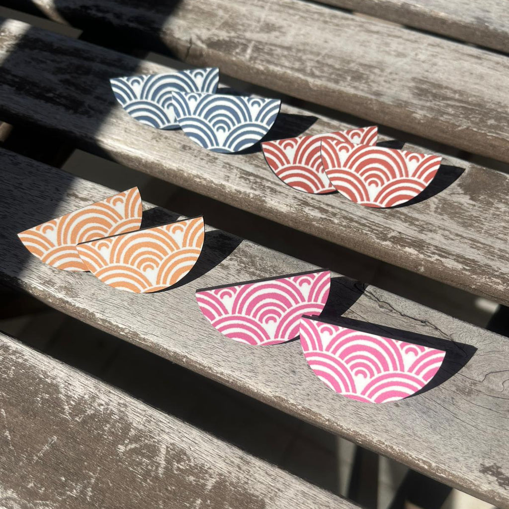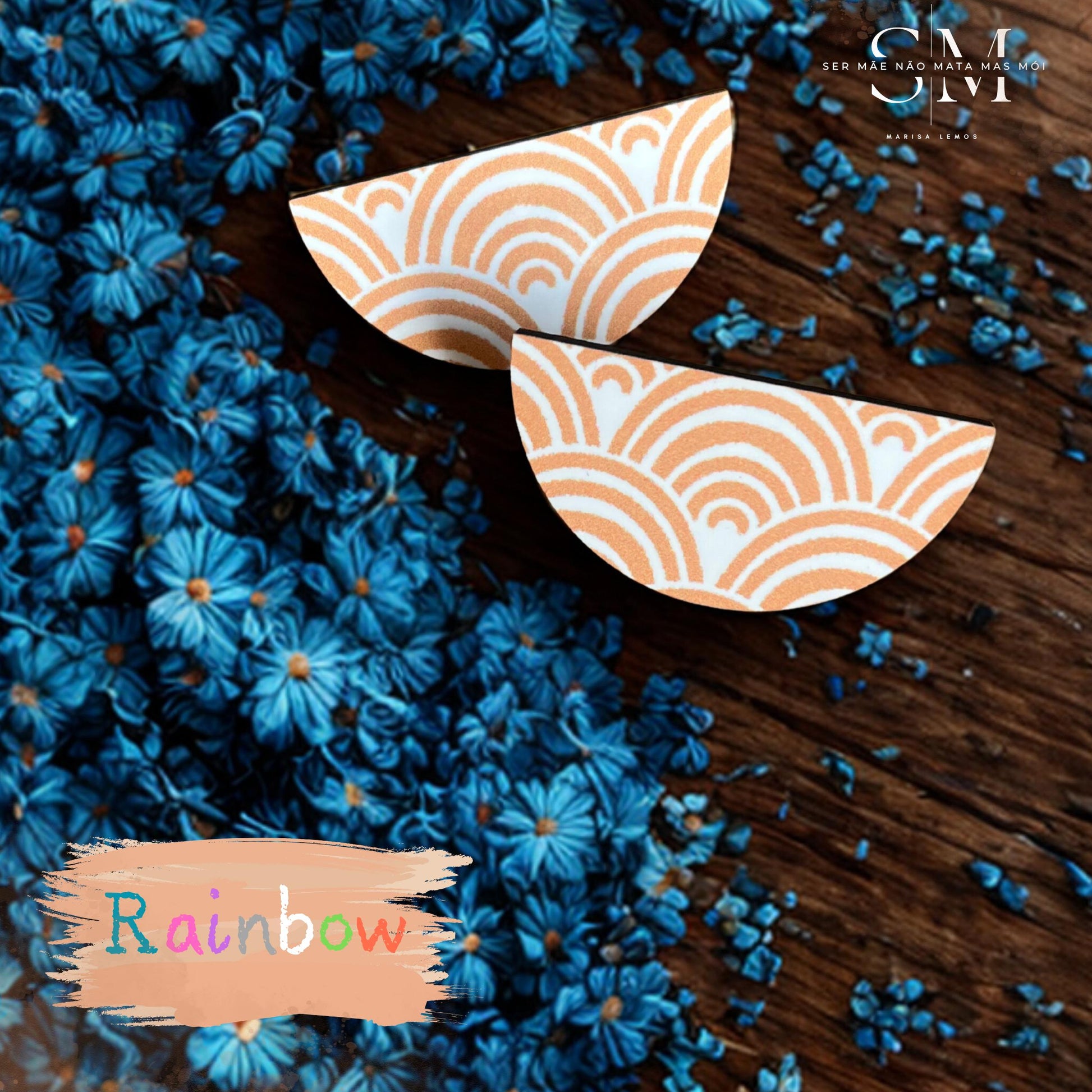 Brincos forma de meia lua, padrão arco-iris - várias cores