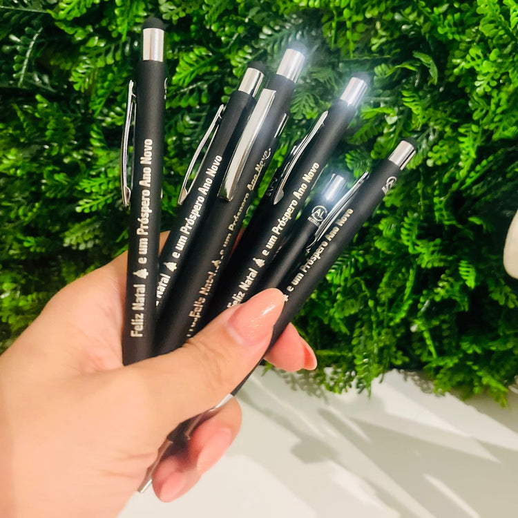 Caneta em alumínio 100% reciclável com a acabamento aborrachado