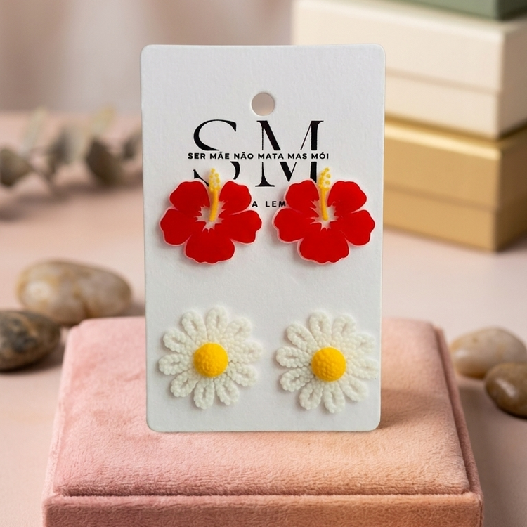 2 pares de brincos flores