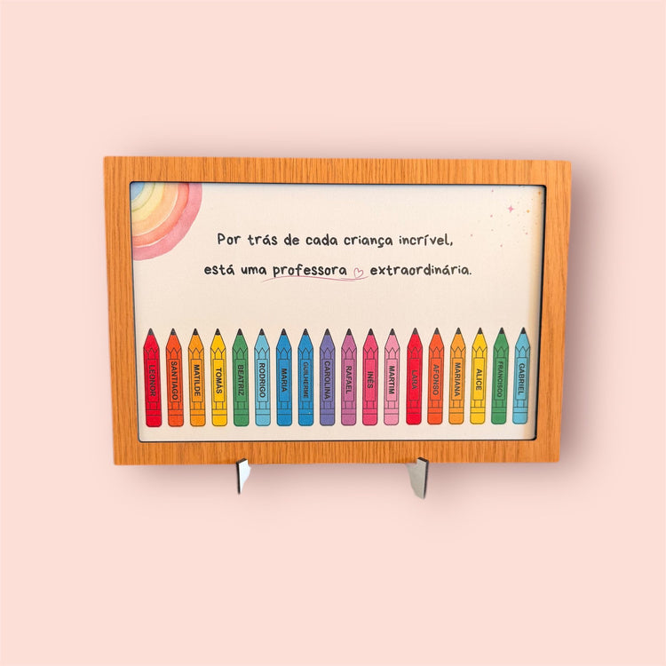 Um quadro em MDf personalizado com todos os nomes da turma.